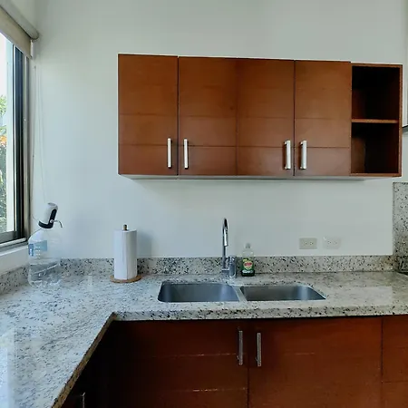 A fully equipped kitchen is also featured, as well as a microwave and a refrigerator. The apartment is quite close to the restaurant Balche Playa.